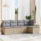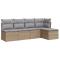 Salon de jardin avec coussins 5 pcs beige résine tresséeCet ensemble de canapés de jardin est le complément parfait de votre arrière-cour, terrasse ou patio, offrant un espace confortable et accueillant pour discuter avec la famille et les amis ou simplement se détendre et profiter de l'extérieur. Matériau durable : la résine tressée, également connue sous le nom de poly rotin, est un matériau synthétique solide et nécessitant peu d'entretien qui ressemble au rotin naturel. Il est léger, facile à nettoyer et couramment utilisé pour les meubles d'extérieur en raison de sa durabilité et de ses propriétés de résistance aux intempéries.Fonction de rangement avec sac résistant à l'eau : chaque siège de jardin dispose d'un espace de rangement sous l'assise, complété par un sac résistant à l'eau pour ranger les coussins, les jouets et d'autres objets. Les sacs intérieurs sont dotés d'un couvercle et peuvent être solidement fixés aux sièges à l'aide de bandes auto-agrippantes pour plus de stabilité.Housse amovible et lavable : ces coussins de siège sont dotés de housses amovibles pour un lavage et un entretien faciles.Conception modulaire : cet ensemble de meubles d'extérieur a une conception modulaire, ce qui le rend complètement flexible et facile à déplacer, afin que vous puissiez créer un agencement de meubles d'extérieur personnalisé. Bon à savoir :Pour que vos meubles d'extérieur restent beaux, nous vous recommandons de les protéger avec une housse imperméable.