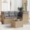 Salon de jardin avec coussins 5 pcs beige résine tresséeCet ensemble de canapés de jardin est le complément parfait de votre arrière-cour, terrasse ou patio, offrant un espace confortable et accueillant pour discuter avec la famille et les amis ou simplement se détendre et profiter de l'extérieur. Matériau durable : la résine tressée, également connue sous le nom de poly rotin, est un matériau synthétique solide et nécessitant peu d'entretien qui ressemble au rotin naturel. Il est léger, facile à nettoyer et couramment utilisé pour les meubles d'extérieur en raison de sa durabilité et de ses propriétés de résistance aux intempéries.Fonction de rangement avec sac résistant à l'eau : chaque siège de jardin dispose d'un espace de rangement sous l'assise, complété par un sac résistant à l'eau pour ranger les coussins, les jouets et d'autres objets. Les sacs intérieurs sont dotés d'un couvercle et peuvent être solidement fixés aux sièges à l'aide de bandes auto-agrippantes pour plus de stabilité.Dessus en verre : le dessus de la table d'extérieur est fabriqué en verre trempé solide et durable, ce qui le rend facile à nettoyer avec un chiffon humide et ajoute une touche d'élégance à votre espace extérieur.Housse amovible et lavable : ces coussins de siège sont dotés de housses amovibles pour un lavage et un entretien faciles.Conception modulaire : cet ensemble de meubles d'extérieur a une conception modulaire, ce qui le rend complètement flexible et facile à déplacer, afin que vous puissiez créer un agencement de meubles d'extérieur personnalisé. Bon à savoir :Pour que vos meubles d'extérieur restent beaux, nous vous recommandons de les protéger avec une housse imperméable.