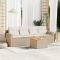 Salon de jardin avec coussins 5 pcs beige résine tressée Cet ensemble de canapés de jardin est le complément parfait de votre arrière-cour, terrasse ou patio, offrant un espace confortable et accueillant pour discuter avec la famille et les amis ou simplement se détendre et profiter de l'extérieur. Matériau durable : la résine tressée, également connue sous le nom de poly rotin, est un matériau synthétique solide et nécessitant peu d'entretien qui ressemble au rotin naturel. Il est léger, facile à nettoyer et couramment utilisé pour les meubles d'extérieur en raison de sa durabilité et de ses propriétés de résistance aux intempéries.Expérience d'assise confortable : ce mobilier d'extérieur, doté de coussins épais, offre une expérience d'assise confortable.Dessus stable et facile à nettoyer : cette table de jardin a un dessus en bois d'acacia robuste, durable et facile à nettoyer avec un chiffon humide.Housse amovible et lavable : ces coussins de siège sont dotés de housses amovibles pour un lavage et un entretien faciles.Conception modulaire : cet ensemble de meubles d'extérieur a une conception modulaire, ce qui le rend complètement flexible et facile à déplacer, afin que vous puissiez créer un agencement de meubles d'extérieur personnalisé. Bon à savoir :Pour que vos meubles d'extérieur restent beaux, nous vous recommandons de les protéger avec une housse imperméable.