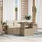 Salon de jardin avec coussins 5 pcs beige résine tresséeCet ensemble de canapés de jardin est le complément parfait de votre arrière-cour, terrasse ou patio, offrant un espace confortable et accueillant pour discuter avec la famille et les amis ou simplement se détendre et profiter de l'extérieur. Matériau durable : la résine tressée, également connue sous le nom de poly rotin, est un matériau synthétique solide et nécessitant peu d'entretien qui ressemble au rotin naturel. Il est léger, facile à nettoyer et couramment utilisé pour les meubles d'extérieur en raison de sa durabilité et de ses propriétés de résistance aux intempéries.Dessus de table réglable : le dessus de table peut être soulevé pour rendre la table plus haute, ce qui transforme la table d'extérieur d'une table basse à une table de salle à manger. Elle est parfaite pour recevoir des invités ou prendre des repas à l'extérieur.Table d'appoint pratique : ce mobilier d'extérieur comprend des tables d'appoint pliables avec un ressort à gaz sur les accoudoirs, offrant des endroits pratiques pour garder vos essentiels à portée de main. Expérience d'assise confortable : ce mobilier d'extérieur, doté de coussins épais, offre une expérience d'assise confortable.Conception modulaire : cet ensemble de meubles d'extérieur a une conception modulaire, ce qui le rend complètement flexible et facile à déplacer, afin que vous puissiez créer un agencement de meubles d'extérieur personnalisé. Bon à savoir :Pour que vos meubles d'extérieur restent beaux, nous vous recommandons de les protéger avec une housse imperméable.