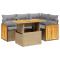 Salon de jardin avec coussins 5 pcs beige résine tresséeCet ensemble de canapés de jardin est le complément parfait de votre arrière-cour, terrasse ou patio, offrant un espace confortable et accueillant pour discuter avec la famille et les amis ou simplement se détendre et profiter de l'extérieur. Matériau durable : la résine tressée, également connue sous le nom de poly rotin, est un matériau synthétique solide et nécessitant peu d'entretien qui ressemble au rotin naturel. Il est léger, facile à nettoyer et couramment utilisé pour les meubles d'extérieur en raison de sa durabilité et de ses propriétés de résistance aux intempéries.Dessus de table réglable : le dessus de table peut être soulevé pour rendre la table plus haute, ce qui transforme la table d'extérieur d'une table basse à une table de salle à manger. Elle est parfaite pour recevoir des invités ou prendre des repas à l'extérieur.Housse amovible et lavable : ces coussins de siège sont dotés de housses amovibles pour un lavage et un entretien faciles.Conception modulaire : cet ensemble de meubles d'extérieur a une conception modulaire, ce qui le rend complètement flexible et facile à déplacer, afin que vous puissiez créer un agencement de meubles d'extérieur personnalisé. Bon à savoir :Pour que vos meubles d'extérieur restent beaux, nous vous recommandons de les protéger avec une housse imperméable.
