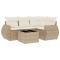 Salon de jardin avec coussins 5 pcs beige résine tresséeCet ensemble de canapés de jardin est le complément parfait de votre arrière-cour, terrasse ou patio, offrant un espace confortable et accueillant pour discuter avec la famille et les amis ou simplement se détendre et profiter de l'extérieur. Matériau durable : la résine tressée, également connue sous le nom de poly rotin, est un matériau synthétique solide et nécessitant peu d'entretien qui ressemble au rotin naturel. Il est léger, facile à nettoyer et couramment utilisé pour les meubles d'extérieur en raison de sa durabilité et de ses propriétés de résistance aux intempéries.Fonction de rangement avec sac résistant à l'eau : chaque siège de jardin dispose d'un espace de rangement sous l'assise, complété par un sac résistant à l'eau pour ranger les coussins, les jouets et d'autres objets. Les sacs intérieurs sont dotés d'un couvercle et peuvent être solidement fixés aux sièges à l'aide de bandes auto-agrippantes pour plus de stabilité.Dessus en verre : le dessus de la table d'extérieur est fabriqué en verre trempé solide et durable, ce qui le rend facile à nettoyer avec un chiffon humide et ajoute une touche d'élégance à votre espace extérieur.Housse amovible et lavable : ces coussins de siège sont dotés de housses amovibles pour un lavage et un entretien faciles.Conception modulaire : cet ensemble de meubles d'extérieur a une conception modulaire, ce qui le rend complètement flexible et facile à déplacer, afin que vous puissiez créer un agencement de meubles d'extérieur personnalisé. Bon à savoir :Pour que vos meubles d'extérieur restent beaux, nous vous recommandons de les protéger avec une housse imperméable.
