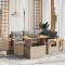 Salon de jardin avec coussins 5 pcs beige résine tresséeCet ensemble de canapés de jardin est le complément parfait de votre arrière-cour, terrasse ou patio, offrant un espace confortable et accueillant pour discuter avec la famille et les amis ou simplement se détendre et profiter de l'extérieur. Matériau durable : la résine tressée, également connue sous le nom de poly rotin, est un matériau synthétique solide et nécessitant peu d'entretien qui ressemble au rotin naturel. Il est léger, facile à nettoyer et couramment utilisé pour les meubles d'extérieur en raison de sa durabilité et de ses propriétés de résistance aux intempéries.Dessus de table réglable : le dessus de table peut être soulevé pour rendre la table plus haute, ce qui transforme la table d'extérieur d'une table basse à une table de salle à manger. Elle est parfaite pour recevoir des invités ou prendre des repas à l'extérieur.Table d'appoint pratique : ce mobilier d'extérieur comprend une table d'appoint pliable avec un ressort à gaz sur les accoudoirs, offrant un endroit pratique pour garder vos essentiels à portée de main.Housse amovible et lavable : ces coussins de siège sont dotés de housses amovibles pour un lavage et un entretien faciles.Conception modulaire : cet ensemble de meubles d'extérieur a une conception modulaire, ce qui le rend complètement flexible et facile à déplacer, afin que vous puissiez créer un agencement de meubles d'extérieur personnalisé. Bon à savoir :Pour que vos meubles d'extérieur restent beaux, nous vous recommandons de les protéger avec une housse imperméable.