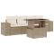 Salon de jardin avec coussins 5 pcs beige résine tresséeCet ensemble de canapés de jardin est le complément parfait de votre arrière-cour, terrasse ou patio, offrant un espace confortable et accueillant pour discuter avec la famille et les amis ou simplement se détendre et profiter de l'extérieur. Matériau durable : la résine tressée, également connue sous le nom de poly rotin, est un matériau synthétique solide et nécessitant peu d'entretien qui ressemble au rotin naturel. Il est léger, facile à nettoyer et couramment utilisé pour les meubles d'extérieur en raison de sa durabilité et de ses propriétés de résistance aux intempéries. Dessus de table réglable : le dessus de table peut être soulevé pour rendre la table plus haute, ce qui transforme la table d'extérieur d'une table basse à une table de salle à manger. Elle est parfaite pour recevoir des invités ou prendre des repas à l'extérieur. Expérience d'assise confortable : ce mobilier d'extérieur, doté de coussins épais, offre une expérience d'assise confortable. Housse amovible et lavable : ces coussins de siège sont dotés de housses amovibles pour un lavage et un entretien faciles. Conception modulaire : cet ensemble de meubles d'extérieur a une conception modulaire, ce qui le rend complètement flexible et facile à déplacer, afin que vous puissiez créer un agencement de meubles d'extérieur personnalisé. Bon à savoir : Pour que vos meubles d'extérieur restent beaux, nous vous recommandons de les protéger avec une housse imperméable.