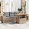 Salon de jardin avec coussins 5 pcs beige résine tresséeCet ensemble de canapés de jardin est le complément parfait de votre arrière-cour, terrasse ou patio, offrant un espace confortable et accueillant pour discuter avec la famille et les amis ou simplement se détendre et profiter de l'extérieur. Matériau durable : la résine tressée, également connue sous le nom de poly rotin, est un matériau synthétique solide et nécessitant peu d'entretien qui ressemble au rotin naturel. Elle est légère, facile à nettoyer et couramment utilisée pour les meubles d'extérieur en raison de sa durabilité et de ses propriétés de résistance aux intempéries. Fonction de rangement avec sac résistant à l'eau : le mobilier de jardin dispose d'un espace de rangement sous l'assise, complété par un sac résistant à l'eau pour ranger coussins, jouets et autres objets. Le sac intérieur peut être solidement fixé au mobilier d'extérieur grâce à des attaches auto-agrippantes pour plus de stabilité. Dessus de table réglable : le dessus de table peut être soulevé pour rendre la table plus haute, ce qui transforme la table d'extérieur d'une table basse à une table de salle à manger. Elle est parfaite pour recevoir des invités ou prendre des repas à l'extérieur. Housse amovible et lavable : ces coussins de siège sont dotés de housses amovibles pour un lavage et un entretien faciles. Conception modulaire : cet ensemble de meubles d'extérieur a une conception modulaire, ce qui le rend complètement flexible et facile à déplacer, afin que vous puissiez créer un agencement de meubles d'extérieur personnalisé. Bon à savoir : Pour que vos meubles d'extérieur restent beaux, nous vous recommandons de les protéger avec une housse imperméable.