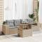 Salon de jardin avec coussins 5 pcs beige résine tresséeCet ensemble de canapés de jardin est le complément parfait de votre arrière-cour, terrasse ou patio, offrant un espace confortable et accueillant pour discuter avec la famille et les amis ou simplement se détendre et profiter de l'extérieur. Matériau durable : la résine tressée, également connue sous le nom de poly rotin, est un matériau synthétique solide et nécessitant peu d'entretien qui ressemble au rotin naturel. Elle est légère, facile à nettoyer et couramment utilisée pour les meubles d'extérieur en raison de sa durabilité et de ses propriétés de résistance aux intempéries. Fonction de rangement avec sac résistant à l'eau : le mobilier de jardin dispose d'un espace de rangement sous l'assise, complété par un sac résistant à l'eau pour ranger coussins, jouets et autres objets. Le sac intérieur peut être solidement fixé au mobilier d'extérieur grâce à des attaches auto-agrippantes pour plus de stabilité. Dessus de table réglable : le dessus de table peut être soulevé pour rendre la table plus haute, ce qui transforme la table d'extérieur d'une table basse à une table de salle à manger. Elle est parfaite pour recevoir des invités ou prendre des repas à l'extérieur. Housse amovible et lavable : ces coussins de siège sont dotés de housses amovibles pour un lavage et un entretien faciles. Conception modulaire : cet ensemble de meubles d'extérieur a une conception modulaire, ce qui le rend complètement flexible et facile à déplacer, afin que vous puissiez créer un agencement de meubles d'extérieur personnalisé. Bon à savoir : Pour que vos meubles d'extérieur restent beaux, nous vous recommandons de les protéger avec une housse imperméable.