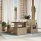Salon de jardin avec coussins 5 pcs beige résine tresséeCet ensemble de canapés de jardin est le complément parfait de votre arrière-cour, terrasse ou patio, offrant un espace confortable et accueillant pour discuter avec la famille et les amis ou simplement se détendre et profiter de l'extérieur. Matériau durable : la résine tressée, également connue sous le nom de poly rotin, est un matériau synthétique solide et nécessitant peu d'entretien qui ressemble au rotin naturel. Il est léger, facile à nettoyer et couramment utilisé pour les meubles d'extérieur en raison de sa durabilité et de ses propriétés de résistance aux intempéries. Dessus de table réglable : le dessus de table peut être soulevé pour rendre la table plus haute, ce qui transforme la table d'extérieur d'une table basse à une table de salle à manger. Elle est parfaite pour recevoir des invités ou prendre des repas à l'extérieur. Table d'appoint pratique : ce mobilier d'extérieur comprend des tables d'appoint pliables avec un ressort à gaz sur les accoudoirs, offrant des endroits pratiques pour garder vos essentiels à portée de main. Expérience d'assise confortable : ce mobilier d'extérieur, doté de coussins épais, offre une expérience d'assise confortable. Conception modulaire : cet ensemble de meubles d'extérieur a une conception modulaire, ce qui le rend complètement flexible et facile à déplacer, afin que vous puissiez créer un agencement de meubles d'extérieur personnalisé. Bon à savoir : Pour que vos meubles d'extérieur restent beaux, nous vous recommandons de les protéger avec une housse imperméable.