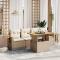 Salon de jardin avec coussins 5 pcs beige résine tresséeCet ensemble de canapés de jardin est le complément parfait de votre arrière-cour, terrasse ou patio, offrant un espace confortable et accueillant pour discuter avec la famille et les amis ou simplement se détendre et profiter de l'extérieur. Matériau durable : la résine tressée, également connue sous le nom de poly rotin, est un matériau synthétique solide et nécessitant peu d'entretien qui ressemble au rotin naturel. Il est léger, facile à nettoyer et couramment utilisé pour les meubles d'extérieur en raison de sa durabilité et de ses propriétés de résistance aux intempéries. Dessus de table réglable : le dessus de table peut être soulevé pour rendre la table plus haute, ce qui transforme la table d'extérieur d'une table basse à une table de salle à manger. Elle est parfaite pour recevoir des invités ou prendre des repas à l'extérieur. Table d'appoint pratique : ce mobilier d'extérieur comprend une table d'appoint pliable avec un ressort à gaz sur les accoudoirs, offrant un endroit pratique pour garder vos essentiels à portée de main. Housse amovible et lavable : ces coussins de siège sont dotés de housses amovibles pour un lavage et un entretien faciles. Conception modulaire : cet ensemble de meubles d'extérieur a une conception modulaire, ce qui le rend complètement flexible et facile à déplacer, afin que vous puissiez créer un agencement de meubles d'extérieur personnalisé. Bon à savoir : Pour que vos meubles d'extérieur restent beaux, nous vous recommandons de les protéger avec une housse imperméable.