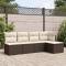 Salon de jardin avec coussins 5 pcs marron résine tresséeCet ensemble de canapés de jardin est le complément parfait de votre arrière-cour, terrasse ou patio, offrant un espace confortable et accueillant pour discuter avec la famille et les amis ou simplement se détendre et profiter de l'extérieur. Matériau durable : la résine tressée, également connue sous le nom de poly rotin, est un matériau synthétique solide et nécessitant peu d'entretien qui ressemble au rotin naturel. Il est léger, facile à nettoyer et couramment utilisé pour les meubles d'extérieur en raison de sa durabilité et de ses propriétés de résistance aux intempéries.Fonction de rangement avec sac résistant à l'eau : chaque siège de jardin dispose d'un espace de rangement sous l'assise, complété par un sac résistant à l'eau pour ranger les coussins, les jouets et d'autres objets. Les sacs intérieurs sont dotés d'un couvercle et peuvent être solidement fixés aux sièges à l'aide de bandes auto-agrippantes pour plus de stabilité.Housse amovible et lavable : ces coussins de siège sont dotés de housses amovibles pour un lavage et un entretien faciles.Conception modulaire : cet ensemble de meubles d'extérieur a une conception modulaire, ce qui le rend complètement flexible et facile à déplacer, afin que vous puissiez créer un agencement de meubles d'extérieur personnalisé. Bon à savoir :Pour que vos meubles d'extérieur restent beaux, nous vous recommandons de les protéger avec une housse imperméable.