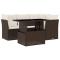Salon de jardin avec coussins 5 pcs marron résine tresséeCet ensemble de canapés de jardin est le complément parfait de votre arrière-cour, terrasse ou patio, offrant un espace confortable et accueillant pour discuter avec la famille et les amis ou simplement se détendre et profiter de l'extérieur. Matériau durable : la résine tressée, également connue sous le nom de poly rotin, est un matériau synthétique solide et nécessitant peu d'entretien qui ressemble au rotin naturel. Il est léger, facile à nettoyer et couramment utilisé pour les meubles d'extérieur en raison de sa durabilité et de ses propriétés de résistance aux intempéries.Dessus de table réglable : le dessus de table peut être soulevé pour rendre la table plus haute, ce qui transforme la table d'extérieur d'une table basse à une table de salle à manger. Elle est parfaite pour recevoir des invités ou prendre des repas à l'extérieur.Expérience d'assise confortable : ce mobilier d'extérieur, doté de coussins épais, offre une expérience d'assise confortable.Housse amovible et lavable : ces coussins de siège sont dotés de housses amovibles pour un lavage et un entretien faciles.Conception modulaire : cet ensemble de meubles d'extérieur a une conception modulaire, ce qui le rend complètement flexible et facile à déplacer, afin que vous puissiez créer un agencement de meubles d'extérieur personnalisé. Bon à savoir :Pour que vos meubles d'extérieur restent beaux, nous vous recommandons de les protéger avec une housse imperméable.