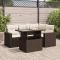 Salon de jardin avec coussins 5 pcs marron résine tresséeCet ensemble de canapés de jardin est le complément parfait de votre arrière-cour, terrasse ou patio, offrant un espace confortable et accueillant pour discuter avec la famille et les amis ou simplement se détendre et profiter de l'extérieur. Matériau durable : la résine tressée, également connue sous le nom de poly rotin, est un matériau synthétique solide et nécessitant peu d'entretien qui ressemble au rotin naturel. Elle est légère, facile à nettoyer et couramment utilisée pour les meubles d'extérieur en raison de sa durabilité et de ses propriétés de résistance aux intempéries.Fonction de rangement avec sac résistant à l'eau : chaque siège de jardin dispose d'un espace de rangement sous l'assise, complété par un sac résistant à l'eau pour ranger les coussins, les jouets et d'autres objets. Le sac intérieur est doté d'un couvercle et peut être solidement fixé au siège à l'aide de bandes auto-agrippantes pour plus de stabilité.Dessus de table réglable : le dessus de table peut être soulevé pour rendre la table plus haute, ce qui transforme la table d'extérieur d'une table basse à une table de salle à manger. Elle est parfaite pour recevoir des invités ou prendre des repas à l'extérieur.Housse amovible et lavable : ces coussins de siège sont dotés de housses amovibles pour un lavage et un entretien faciles.Cadre robuste et stable : le cadre en acier enduit de poudre est solide, stable, durable et résistant à la corrosion et aux intempéries, ce qui garantit des performances durables. Bon à savoir :Pour que vos meubles d'extérieur restent beaux, nous vous recommandons de les protéger avec une housse imperméable.