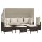 Salon de jardin avec coussins 5 pcs marron résine tresséeCet ensemble de canapés de jardin est le complément parfait de votre arrière-cour, terrasse ou patio, offrant un espace confortable et accueillant pour discuter avec la famille et les amis ou simplement se détendre et profiter de l'extérieur. Matériau durable : la résine tressée, également connue sous le nom de poly rotin, est un matériau synthétique solide et nécessitant peu d'entretien qui ressemble au rotin naturel. Il est léger, facile à nettoyer et couramment utilisé pour les meubles d'extérieur en raison de sa durabilité et de ses propriétés de résistance aux intempéries.Dossier et repose-pied réglables : ce meuble d'extérieur est doté d'un dossier à 3 positions réglables et d'un repose-pieds à 2 positions réglables, ce qui vous permet de trouver facilement la position la plus confortable et la plus appropriée pour la détente.Auvent rétractable : grâce à l'auvent rétractable, vous pouvez créer un environnement extérieur frais et agréable tout au long de la journée.Expérience d'assise confortable : ce mobilier d'extérieur, doté de coussins épais, offre une expérience d'assise confortable.Pouf polyvalent : le tabouret est polyvalent, servant de repose-pieds confortable lorsque vous vous prélassez sur le canapé ou de siège supplémentaire dans votre jardin. Bon à savoir :Pour que vos meubles d'extérieur restent beaux, nous vous recommandons de les protéger avec une housse imperméable.