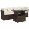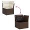 Salon de jardin avec coussins 5 pcs marron résine tresséeCet ensemble de canapés de jardin est le complément parfait de votre arrière-cour, terrasse ou patio, offrant un espace confortable et accueillant pour discuter avec la famille et les amis ou simplement se détendre et profiter de l'extérieur. Matériau durable : la résine tressée, également connue sous le nom de poly rotin, est un matériau synthétique solide et nécessitant peu d'entretien qui ressemble au rotin naturel. Elle est légère, facile à nettoyer et couramment utilisée pour les meubles d'extérieur en raison de sa durabilité et de ses propriétés de résistance aux intempéries.Fonction de rangement avec sac résistant à l'eau : chaque siège de jardin dispose d'un espace de rangement sous l'assise, complété par un sac résistant à l'eau pour ranger les coussins, les jouets et d'autres objets. Le sac intérieur est doté d'un couvercle et peut être solidement fixé au siège à l'aide de bandes auto-agrippantes pour plus de stabilité.Dessus de table réglable : le dessus de table peut être soulevé pour rendre la table plus haute, ce qui transforme la table d'extérieur d'une table basse à une table de salle à manger. Elle est parfaite pour recevoir des invités ou prendre des repas à l'extérieur.Housse amovible et lavable : ces coussins de siège sont dotés de housses amovibles pour un lavage et un entretien faciles.Cadre robuste et stable : le cadre en acier enduit de poudre est solide, stable, durable et résistant à la corrosion et aux intempéries, ce qui garantit des performances durables. Bon à savoir :Pour que vos meubles d'extérieur restent beaux, nous vous recommandons de les protéger avec une housse imperméable.