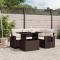 Salon de jardin avec coussins 5 pcs marron résine tresséeCet ensemble de canapés de jardin est le complément parfait de votre arrière-cour, terrasse ou patio, offrant un espace confortable et accueillant pour discuter avec la famille et les amis ou simplement se détendre et profiter de l'extérieur. Matériau durable : la résine tressée, également connue sous le nom de poly rotin, est un matériau synthétique solide et nécessitant peu d'entretien qui ressemble au rotin naturel. Il est léger, facile à nettoyer et couramment utilisé pour les meubles d'extérieur en raison de sa durabilité et de ses propriétés de résistance aux intempéries.Dessus de table réglable : le dessus de table peut être soulevé pour rendre la table plus haute, ce qui transforme la table d'extérieur d'une table basse à une table de salle à manger. Elle est parfaite pour recevoir des invités ou prendre des repas à l'extérieur.Table d'appoint pratique : ce mobilier d'extérieur comprend des tables d'appoint pliables avec un ressort à gaz sur les accoudoirs, offrant des endroits pratiques pour garder vos essentiels à portée de main. Expérience d'assise confortable : ce mobilier d'extérieur, doté de coussins épais, offre une expérience d'assise confortable.Conception modulaire : cet ensemble de meubles d'extérieur a une conception modulaire, ce qui le rend complètement flexible et facile à déplacer, afin que vous puissiez créer un agencement de meubles d'extérieur personnalisé. Bon à savoir :Pour que vos meubles d'extérieur restent beaux, nous vous recommandons de les protéger avec une housse imperméable.
