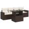 Salon de jardin avec coussins 5 pcs marron résine tresséeCet ensemble de canapés de jardin est le complément parfait de votre arrière-cour, terrasse ou patio, offrant un espace confortable et accueillant pour discuter avec la famille et les amis ou simplement se détendre et profiter de l'extérieur. Matériau durable : la résine tressée, également connue sous le nom de poly rotin, est un matériau synthétique solide et nécessitant peu d'entretien qui ressemble au rotin naturel. Elle est légère, facile à nettoyer et couramment utilisée pour les meubles d'extérieur en raison de sa durabilité et de ses propriétés de résistance aux intempéries.Fonction de rangement avec sac résistant à l'eau : chaque siège de jardin dispose d'un espace de rangement sous l'assise, complété par un sac résistant à l'eau pour ranger les coussins, les jouets et d'autres objets. Le sac intérieur est doté d'un couvercle et peut être solidement fixé au siège à l'aide de bandes auto-agrippantes pour plus de stabilité.Dessus de table réglable : le dessus de table peut être soulevé pour rendre la table plus haute, ce qui transforme la table d'extérieur d'une table basse à une table de salle à manger. Elle est parfaite pour recevoir des invités ou prendre des repas à l'extérieur.Housse amovible et lavable : ces coussins de siège sont dotés de housses amovibles pour un lavage et un entretien faciles.Cadre robuste et stable : le cadre en acier enduit de poudre est solide, stable, durable et résistant à la corrosion et aux intempéries, ce qui garantit des performances durables. Bon à savoir :Pour que vos meubles d'extérieur restent beaux, nous vous recommandons de les protéger avec une housse imperméable.