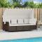 Salon de jardin avec coussins 5 pcs marron résine tresséeCet ensemble de canapés de jardin est le complément parfait de votre arrière-cour, terrasse ou patio, offrant un espace confortable et accueillant pour discuter avec la famille et les amis ou simplement se détendre et profiter de l'extérieur. Matériau durable : la résine tressée, également connue sous le nom de poly rotin, est un matériau synthétique solide et nécessitant peu d'entretien qui ressemble au rotin naturel. Il est léger, facile à nettoyer et couramment utilisé pour les meubles d'extérieur en raison de sa durabilité et de ses propriétés de résistance aux intempéries.Auvent rétractable : grâce à l'auvent rétractable, vous pouvez créer un environnement extérieur frais et agréable tout au long de la journée.Expérience d'assise confortable : ce mobilier d'extérieur, doté de coussins épais, offre une expérience d'assise confortable.Pouf polyvalent : le tabouret est polyvalent, servant de repose-pieds confortable lorsque vous vous prélassez sur le canapé ou de siège supplémentaire dans votre jardin.Housse amovible et lavable : ces coussins de siège sont dotés de housses amovibles pour un lavage et un entretien faciles. Bon à savoir :Pour que vos meubles d'extérieur restent beaux, nous vous recommandons de les protéger avec une housse imperméable.