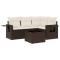 Salon de jardin avec coussins 5 pcs marron résine tresséeCet ensemble de canapés de jardin est le complément parfait de votre arrière-cour, terrasse ou patio, offrant un espace confortable et accueillant pour discuter avec la famille et les amis ou simplement se détendre et profiter de l'extérieur. Matériau durable : la résine tressée, également connue sous le nom de poly rotin, est un matériau synthétique solide et nécessitant peu d'entretien qui ressemble au rotin naturel. Il est léger, facile à nettoyer et couramment utilisé pour les meubles d'extérieur en raison de sa durabilité et de ses propriétés de résistance aux intempéries.Dessus en verre : le dessus de la table d'extérieur est fabriqué en verre trempé solide et durable, ce qui le rend facile à nettoyer avec un chiffon humide et ajoute une touche d'élégance à votre espace extérieur. Table d'appoint pratique : ce mobilier d'extérieur comprend des tables d'appoint pliables avec un ressort à gaz sur les accoudoirs, offrant des endroits pratiques pour garder vos essentiels à portée de main. Expérience d'assise confortable : ce mobilier d'extérieur, doté de coussins épais, offre une expérience d'assise confortable.Conception modulaire : cet ensemble de meubles d'extérieur a une conception modulaire, ce qui le rend complètement flexible et facile à déplacer, afin que vous puissiez créer un agencement de meubles d'extérieur personnalisé. Bon à savoir :Pour que vos meubles d'extérieur restent beaux, nous vous recommandons de les protéger avec une housse imperméable.