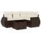 Salon de jardin avec coussins 5 pcs marron résine tresséeCet ensemble de canapés de jardin est le complément parfait de votre arrière-cour, terrasse ou patio, offrant un espace confortable et accueillant pour discuter avec la famille et les amis ou simplement se détendre et profiter de l'extérieur. Matériau durable : la résine tressée, également connue sous le nom de poly rotin, est un matériau synthétique solide et nécessitant peu d'entretien qui ressemble au rotin naturel. Il est léger, facile à nettoyer et couramment utilisé pour les meubles d'extérieur en raison de sa durabilité et de ses propriétés de résistance aux intempéries.Fonction de rangement avec sac résistant à l'eau : chaque siège de jardin dispose d'un espace de rangement sous l'assise, complété par un sac résistant à l'eau pour ranger les coussins, les jouets et d'autres objets. Les sacs intérieurs sont dotés d'un couvercle et peuvent être solidement fixés aux sièges à l'aide de bandes auto-agrippantes pour plus de stabilité.Dessus en verre : le dessus de la table d'extérieur est fabriqué en verre trempé solide et durable, ce qui le rend facile à nettoyer avec un chiffon humide et ajoute une touche d'élégance à votre espace extérieur.Housse amovible et lavable : ces coussins de siège sont dotés de housses amovibles pour un lavage et un entretien faciles.Conception modulaire : cet ensemble de meubles d'extérieur a une conception modulaire, ce qui le rend complètement flexible et facile à déplacer, afin que vous puissiez créer un agencement de meubles d'extérieur personnalisé. Bon à savoir :Pour que vos meubles d'extérieur restent beaux, nous vous recommandons de les protéger avec une housse imperméable.