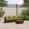 Salon de jardin avec coussins 5 pcs marron résine tresséeCet ensemble de canapés de jardin est le complément parfait de votre arrière-cour, terrasse ou patio, offrant un espace confortable et accueillant pour discuter avec la famille et les amis ou simplement se détendre et profiter de l'extérieur. Matériau durable : la résine tressée, également connue sous le nom de poly rotin, est un matériau synthétique solide et nécessitant peu d'entretien qui ressemble au rotin naturel. Elle est légère, facile à nettoyer et couramment utilisée pour les meubles d'extérieur en raison de sa durabilité et de ses propriétés de résistance aux intempéries.Cadre robuste et stable : le cadre en acier enduit de poudre est solide, stable, durable et résistant à la corrosion et aux intempéries, ce qui garantit des performances durables.Conception modulaire : cet ensemble de meubles d'extérieur a une conception modulaire, ce qui le rend complètement flexible et facile à déplacer, afin que vous puissiez créer un agencement de meubles d'extérieur personnalisé.Expérience d'assise confortable : ce mobilier d'extérieur, doté de coussins épais, offre une expérience d'assise confortable.Dessus en verre : le dessus de la table d'extérieur est fabriqué en verre trempé solide et durable, ce qui le rend facile à nettoyer avec un chiffon humide et ajoute une touche d'élégance à votre espace extérieur. Bon à savoir :Pour que vos meubles d'extérieur restent beaux, nous vous recommandons de les protéger avec une housse imperméable. Maximum 110 kg par siège.
