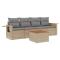 Salon de jardin avec coussins 5pcs mélange beige résine tresséeCet ensemble de canapés de jardin est le complément parfait de votre arrière-cour, terrasse ou patio, offrant un espace confortable et accueillant pour discuter avec la famille et les amis ou simplement se détendre et profiter de l'extérieur. Matériau durable : la résine tressée, également connue sous le nom de poly rotin, est un matériau synthétique solide et nécessitant peu d'entretien qui ressemble au rotin naturel. Il est léger, facile à nettoyer et couramment utilisé pour les meubles d'extérieur en raison de sa durabilité et de ses propriétés de résistance aux intempéries.Fonction de rangement avec sac résistant à l'eau : chaque siège de jardin dispose d'un espace de rangement sous l'assise, complété par un sac résistant à l'eau pour ranger les coussins, les jouets et d'autres objets. Les sacs intérieurs sont dotés d'un couvercle et peuvent être solidement fixés aux sièges à l'aide de bandes auto-agrippantes pour plus de stabilité.Dessus stable et facile à nettoyer : cette table de jardin a un dessus en bois d'acacia robuste, durable et facile à nettoyer avec un chiffon humide.Table d'appoint pratique : ce mobilier d'extérieur comprend des tables d'appoint pliables avec un ressort à gaz sur les accoudoirs, offrant des endroits pratiques pour garder vos essentiels à portée de main.Conception modulaire : cet ensemble de meubles d'extérieur a une conception modulaire, ce qui le rend complètement flexible et facile à déplacer, afin que vous puissiez créer un agencement de meubles d'extérieur personnalisé. Bon à savoir :Pour que vos meubles d'extérieur restent beaux, nous vous recommandons de les protéger avec une housse imperméable.