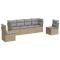 Salon de jardin avec coussins 6 pcs beige résine tresséeCet ensemble de canapés de jardin est le complément parfait de votre arrière-cour, terrasse ou patio, offrant un espace confortable et accueillant pour discuter avec la famille et les amis ou simplement se détendre et profiter de l'extérieur. Matériau durable : la résine tressée, également connue sous le nom de poly rotin, est un matériau synthétique solide et nécessitant peu d'entretien qui ressemble au rotin naturel. Il est léger, facile à nettoyer et couramment utilisé pour les meubles d'extérieur en raison de sa durabilité et de ses propriétés de résistance aux intempéries.Fonction de rangement avec sac résistant à l'eau : chaque siège de jardin dispose d'un espace de rangement sous l'assise, complété par un sac résistant à l'eau pour ranger les coussins, les jouets et d'autres objets. Les sacs intérieurs sont dotés d'un couvercle et peuvent être solidement fixés aux sièges à l'aide de bandes auto-agrippantes pour plus de stabilité.Housse amovible et lavable : ces coussins de siège sont dotés de housses amovibles pour un lavage et un entretien faciles.Conception modulaire : cet ensemble de meubles d'extérieur a une conception modulaire, ce qui le rend complètement flexible et facile à déplacer, afin que vous puissiez créer un agencement de meubles d'extérieur personnalisé. Bon à savoir :Pour que vos meubles d'extérieur restent beaux, nous vous recommandons de les protéger avec une housse imperméable.