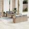 Salon de jardin avec coussins 6 pcs beige résine tresséeCet ensemble de canapés de jardin est le complément parfait de votre arrière-cour, terrasse ou patio, offrant un espace confortable et accueillant pour discuter avec la famille et les amis ou simplement se détendre et profiter de l'extérieur. Matériau durable : la résine tressée, également connue sous le nom de poly rotin, est un matériau synthétique solide et nécessitant peu d'entretien qui ressemble au rotin naturel. Il est léger, facile à nettoyer et couramment utilisé pour les meubles d'extérieur en raison de sa durabilité et de ses propriétés de résistance aux intempéries.Expérience d'assise confortable : ce mobilier d'extérieur, doté de coussins épais, offre une expérience d'assise confortable. Les larges accoudoirs offrent également un endroit pratique pour garder votre téléphone portable, vos tasses ou d'autres petits objets à portée de main.Housse amovible et lavable : ces coussins de siège sont dotés de housses amovibles pour un lavage et un entretien faciles.Dessus en verre : le dessus de la table d'extérieur est fabriqué en verre trempé solide et durable, ce qui le rend facile à nettoyer avec un chiffon humide et ajoute une touche d'élégance à votre espace extérieur.Conception modulaire : cet ensemble de meubles d'extérieur a une conception modulaire, ce qui le rend complètement flexible et facile à déplacer, afin que vous puissiez créer un agencement de meubles d'extérieur personnalisé. Bon à savoir :Pour que vos meubles d'extérieur restent beaux, nous vous recommandons de les protéger avec une housse imperméable.