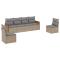 Salon de jardin avec coussins 6 pcs beige résine tresséeCet ensemble de canapés de jardin est le complément parfait de votre arrière-cour, terrasse ou patio, offrant un espace confortable et accueillant pour discuter avec la famille et les amis ou simplement se détendre et profiter de l'extérieur. Matériau durable : la résine tressée, également connue sous le nom de poly rotin, est un matériau synthétique solide et nécessitant peu d'entretien qui ressemble au rotin naturel. Il est léger, facile à nettoyer et couramment utilisé pour les meubles d'extérieur en raison de sa durabilité et de ses propriétés de résistance aux intempéries.Fonction de rangement avec sac résistant à l'eau : le mobilier de jardin dispose d'un espace de rangement sous l'assise, complété par un sac résistant à l'eau pour ranger coussins, jouets et autres objets. Le sac intérieur peut être solidement fixé au mobilier d'extérieur grâce à des attaches auto-agrippantes pour plus de stabilité.Housse amovible et lavable : ces coussins de siège sont dotés de housses amovibles pour un lavage et un entretien faciles.Conception modulaire : cet ensemble de meubles d'extérieur a une conception modulaire, ce qui le rend complètement flexible et facile à déplacer, afin que vous puissiez créer un agencement de meubles d'extérieur personnalisé. Bon à savoir :Pour que vos meubles d'extérieur restent beaux, nous vous recommandons de les protéger avec une housse imperméable.