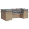 Salon de jardin avec coussins 6 pcs beige résine tresséeCet ensemble de canapés de jardin est le complément parfait de votre arrière-cour, terrasse ou patio, offrant un espace confortable et accueillant pour discuter avec la famille et les amis ou simplement se détendre et profiter de l'extérieur. Matériau durable : la résine tressée, également connue sous le nom de poly rotin, est un matériau synthétique solide et nécessitant peu d'entretien qui ressemble au rotin naturel. Il est léger, facile à nettoyer et couramment utilisé pour les meubles d'extérieur en raison de sa durabilité et de ses propriétés de résistance aux intempéries.Fonction de rangement avec sac résistant à l'eau : chaque siège de jardin dispose d'un espace de rangement sous l'assise, complété par un sac résistant à l'eau pour ranger les coussins, les jouets et d'autres objets. Les sacs intérieurs sont dotés d'un couvercle et peuvent être solidement fixés aux sièges à l'aide de bandes auto-agrippantes pour plus de stabilité.Housse amovible et lavable : ces coussins de siège sont dotés de housses amovibles pour un lavage et un entretien faciles.Conception modulaire : cet ensemble de meubles d'extérieur a une conception modulaire, ce qui le rend complètement flexible et facile à déplacer, afin que vous puissiez créer un agencement de meubles d'extérieur personnalisé. Bon à savoir :Pour que vos meubles d'extérieur restent beaux, nous vous recommandons de les protéger avec une housse imperméable.