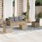 Salon de jardin avec coussins 6 pcs beige résine tresséeCet ensemble de canapés de jardin est le complément parfait de votre arrière-cour, terrasse ou patio, offrant un espace confortable et accueillant pour discuter avec la famille et les amis ou simplement se détendre et profiter de l'extérieur. Matériau durable : la résine tressée, également connue sous le nom de poly rotin, est un matériau synthétique solide et nécessitant peu d'entretien qui ressemble au rotin naturel. Il est léger, facile à nettoyer et couramment utilisé pour les meubles d'extérieur en raison de sa durabilité et de ses propriétés de résistance aux intempéries.Fonction de rangement avec sac résistant à l'eau : le mobilier de jardin dispose d'un espace de rangement sous l'assise, complété par un sac résistant à l'eau pour ranger coussins, jouets et autres objets. Le sac intérieur peut être solidement fixé au mobilier d'extérieur grâce à des attaches auto-agrippantes pour plus de stabilité.Dessus stable et facile à nettoyer : cette table de jardin a un dessus en bois d'acacia robuste, durable et facile à nettoyer avec un chiffon humide.Housse amovible et lavable : ces coussins de siège sont dotés de housses amovibles pour un lavage et un entretien faciles.Conception modulaire : cet ensemble de meubles d'extérieur a une conception modulaire, ce qui le rend complètement flexible et facile à déplacer, afin que vous puissiez créer un agencement de meubles d'extérieur personnalisé. Bon à savoir :Pour que vos meubles d'extérieur restent beaux, nous vous recommandons de les protéger avec une housse imperméable.