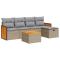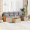 Salon de jardin avec coussins 6 pcs beige résine tresséeCet ensemble de canapés de jardin est le complément parfait de votre arrière-cour, terrasse ou patio, offrant un espace confortable et accueillant pour discuter avec la famille et les amis ou simplement se détendre et profiter de l'extérieur. Matériau durable : la résine tressée, également connue sous le nom de poly rotin, est un matériau synthétique solide et nécessitant peu d'entretien qui ressemble au rotin naturel. Elle est légère, facile à nettoyer et couramment utilisée pour les meubles d'extérieur en raison de sa durabilité et de ses propriétés de résistance aux intempéries.Fonction de rangement avec sac résistant à l'eau : chaque siège de jardin dispose d'un espace de rangement sous l'assise, complété par un sac résistant à l'eau pour ranger les coussins, les jouets et d'autres objets. Le sac intérieur est doté d'un couvercle et peut être solidement fixé au siège à l'aide de bandes auto-agrippantes pour plus de stabilité.Dessus stable et facile à nettoyer : cette table de jardin a un dessus en bois d'acacia robuste, durable et facile à nettoyer avec un chiffon humide.Pouf polyvalent : le tabouret est polyvalent, servant de repose-pieds confortable lorsque vous vous prélassez sur le canapé ou de siège supplémentaire dans votre jardin.Housse amovible et lavable : ces coussins de siège sont dotés de housses amovibles pour un lavage et un entretien faciles.Cadre robuste et stable : le cadre en acier enduit de poudre est solide, stable, durable et résistant à la corrosion et aux intempéries, ce qui garantit des performances durables. Bon à savoir :Pour que vos meubles d'extérieur restent beaux, nous vous recommandons de les protéger avec une housse imperméable.
