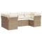 Salon de jardin avec coussins 6 pcs beige résine tresséeCet ensemble de canapés de jardin est le complément parfait de votre arrière-cour, terrasse ou patio, offrant un espace confortable et accueillant pour discuter avec la famille et les amis ou simplement se détendre et profiter de l'extérieur. Matériau durable : la résine tressée, également connue sous le nom de poly rotin, est un matériau synthétique solide et nécessitant peu d'entretien qui ressemble au rotin naturel. Il est léger, facile à nettoyer et couramment utilisé pour les meubles d'extérieur en raison de sa durabilité et de ses propriétés de résistance aux intempéries.Fonction de rangement avec sac résistant à l'eau : chaque siège de jardin dispose d'un espace de rangement sous l'assise, complété par un sac résistant à l'eau pour ranger les coussins, les jouets et d'autres objets. Les sacs intérieurs sont dotés d'un couvercle et peuvent être solidement fixés aux sièges à l'aide de bandes auto-agrippantes pour plus de stabilité.Housse amovible et lavable : ces coussins de siège sont dotés de housses amovibles pour un lavage et un entretien faciles.Conception modulaire : cet ensemble de meubles d'extérieur a une conception modulaire, ce qui le rend complètement flexible et facile à déplacer, afin que vous puissiez créer un agencement de meubles d'extérieur personnalisé. Bon à savoir :Pour que vos meubles d'extérieur restent beaux, nous vous recommandons de les protéger avec une housse imperméable.