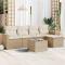 Salon de jardin avec coussins 6 pcs beige résine tresséeCet ensemble de canapés de jardin est le complément parfait de votre arrière-cour, terrasse ou patio, offrant un espace confortable et accueillant pour discuter avec la famille et les amis ou simplement se détendre et profiter de l'extérieur. Matériau durable : la résine tressée, également connue sous le nom de poly rotin, est un matériau synthétique solide et nécessitant peu d'entretien qui ressemble au rotin naturel. Il est léger, facile à nettoyer et couramment utilisé pour les meubles d'extérieur en raison de sa durabilité et de ses propriétés de résistance aux intempéries. Expérience d'assise confortable : ce mobilier d'extérieur, doté de coussins épais, offre une expérience d'assise confortable. Les larges accoudoirs offrent également un endroit pratique pour garder votre téléphone portable, vos tasses ou d'autres petits objets à portée de main. Housse amovible et lavable : ces coussins de siège sont dotés de housses amovibles pour un lavage et un entretien faciles. Dessus en verre : le dessus de la table d'extérieur est fabriqué en verre trempé solide et durable, ce qui le rend facile à nettoyer avec un chiffon humide et ajoute une touche d'élégance à votre espace extérieur. Conception modulaire : cet ensemble de meubles d'extérieur a une conception modulaire, ce qui le rend complètement flexible et facile à déplacer, afin que vous puissiez créer un agencement de meubles d'extérieur personnalisé. Bon à savoir : Pour que vos meubles d'extérieur restent beaux, nous vous recommandons de les protéger avec une housse imperméable.