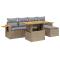 Salon de jardin avec coussins 6 pcs beige résine tresséeCet ensemble de canapés de jardin est le complément parfait de votre arrière-cour, terrasse ou patio, offrant un espace confortable et accueillant pour discuter avec la famille et les amis ou simplement se détendre et profiter de l'extérieur. Matériau durable : la résine tressée, également connue sous le nom de poly rotin, est un matériau synthétique solide et nécessitant peu d'entretien qui ressemble au rotin naturel. Il est léger, facile à nettoyer et couramment utilisé pour les meubles d'extérieur en raison de sa durabilité et de ses propriétés de résistance aux intempéries. Dessus de table réglable : le dessus de table peut être soulevé pour rendre la table plus haute, ce qui transforme la table d'extérieur d'une table basse à une table de salle à manger. Elle est parfaite pour recevoir des invités ou prendre des repas à l'extérieur. Table d'appoint pratique : ce mobilier d'extérieur comprend une table d'appoint pliable avec un ressort à gaz sur les accoudoirs, offrant un endroit pratique pour garder vos essentiels à portée de main. Housse amovible et lavable : ces coussins de siège sont dotés de housses amovibles pour un lavage et un entretien faciles. Conception modulaire : cet ensemble de meubles d'extérieur a une conception modulaire, ce qui le rend complètement flexible et facile à déplacer, afin que vous puissiez créer un agencement de meubles d'extérieur personnalisé. Bon à savoir : Pour que vos meubles d'extérieur restent beaux, nous vous recommandons de les protéger avec une housse imperméable.