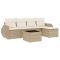 Salon de jardin avec coussins 6 pcs beige résine tresséeCet ensemble de canapés de jardin est le complément parfait de votre arrière-cour, terrasse ou patio, offrant un espace confortable et accueillant pour discuter avec la famille et les amis ou simplement se détendre et profiter de l'extérieur. Matériau durable : la résine tressée, également connue sous le nom de poly rotin, est un matériau synthétique solide et nécessitant peu d'entretien qui ressemble au rotin naturel. Il est léger, facile à nettoyer et couramment utilisé pour les meubles d'extérieur en raison de sa durabilité et de ses propriétés de résistance aux intempéries. Dessus en verre : le dessus de la table d'extérieur est fabriqué en verre trempé solide et durable, ce qui le rend facile à nettoyer avec un chiffon humide et ajoute une touche d'élégance à votre espace extérieur. Expérience d'assise confortable : ce mobilier d'extérieur, doté de coussins épais, offre une expérience d'assise confortable. Housse amovible et lavable : ces coussins de siège sont dotés de housses amovibles pour un lavage et un entretien faciles. Conception modulaire : cet ensemble de meubles d'extérieur a une conception modulaire, ce qui le rend complètement flexible et facile à déplacer, afin que vous puissiez créer un agencement de meubles d'extérieur personnalisé. Bon à savoir : Pour que vos meubles d'extérieur restent beaux, nous vous recommandons de les protéger avec une housse imperméable.
