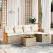 Salon de jardin avec coussins 6 pcs beige résine tresséeCet ensemble de canapés de jardin est le complément parfait de votre arrière-cour, terrasse ou patio, offrant un espace confortable et accueillant pour discuter avec la famille et les amis ou simplement se détendre et profiter de l'extérieur. Matériau durable : la résine tressée, également connue sous le nom de poly rotin, est un matériau synthétique solide et nécessitant peu d'entretien qui ressemble au rotin naturel. Il est léger, facile à nettoyer et couramment utilisé pour les meubles d'extérieur en raison de sa durabilité et de ses propriétés de résistance aux intempéries. Dessus stable et facile à nettoyer : cette table de jardin a un dessus en bois d'acacia robuste, durable et facile à nettoyer avec un chiffon humide. Housse amovible et lavable : ces coussins de siège sont dotés de housses amovibles pour un lavage et un entretien faciles. Cadre robuste et stable : le cadre en acier enduit de poudre assure la solidité et la stabilité du meuble de jardin pour une utilisation quotidienne à l'extérieur. Conception modulaire : cet ensemble de meubles d'extérieur a une conception modulaire, ce qui le rend complètement flexible et facile à déplacer, afin que vous puissiez créer un agencement de meubles d'extérieur personnalisé. Bon à savoir : Pour que vos meubles d'extérieur restent beaux, nous vous recommandons de les protéger avec une housse imperméable.