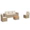Salon de jardin avec coussins 6 pcs beige résine tresséeCet ensemble de canapés de jardin est le complément parfait de votre arrière-cour, terrasse ou patio, offrant un espace confortable et accueillant pour discuter avec la famille et les amis ou simplement se détendre et profiter de l'extérieur. Matériau durable : la résine tressée, également connue sous le nom de poly rotin, est un matériau synthétique solide et nécessitant peu d'entretien qui ressemble au rotin naturel. Il est léger, facile à nettoyer et couramment utilisé pour les meubles d'extérieur en raison de sa durabilité et de ses propriétés de résistance aux intempéries. Fonction de rangement avec sac résistant à l'eau : chaque siège de jardin dispose d'un espace de rangement sous l'assise, complété par un sac résistant à l'eau pour ranger les coussins, les jouets et d'autres objets. Les sacs intérieurs sont dotés d'un couvercle et peuvent être solidement fixés aux sièges à l'aide de bandes auto-agrippantes pour plus de stabilité. Dessus stable et facile à nettoyer : cette table de jardin a un dessus en bois d'acacia robuste, durable et facile à nettoyer avec un chiffon humide. Expérience d'assise confortable : ce mobilier d'extérieur, doté de coussins épais, offre une expérience d'assise confortable. Conception modulaire : cet ensemble de meubles d'extérieur a une conception modulaire, ce qui le rend complètement flexible et facile à déplacer, afin que vous puissiez créer un agencement de meubles d'extérieur personnalisé. Bon à savoir : Pour que vos meubles d'extérieur restent beaux, nous vous recommandons de les protéger avec une housse imperméable.