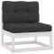 Salon de jardin avec coussins 6 pcs blanc bois de pin massifCe salon de jardin en bois de pin est un choix idéal pour vous détendre, profiter du beau temps, faire une sieste ou discuter avec votre famille ou vos amis. L'ensemble de canapé est fait de bois de pin massif, ce qui le rend robuste et stable. Cet ensemble possède une construction solide et nécessite peu d'entretien. Les coussins ajoutent un confort supplémentaire. Cet ensemble de salon ajoutera une touche de charme rustique à votre espace de vie extérieur. Remarque : afin de prolonger la durée de vie des meubles d'extérieur, nous vous recommandons de les protéger avec une housse imperméable. Maximum 110 kg par siège.