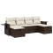 Salon de jardin avec coussins 6 pcs marron résine tresséeCet ensemble de canapés de jardin est le complément parfait de votre arrière-cour, terrasse ou patio, offrant un espace confortable et accueillant pour discuter avec la famille et les amis ou simplement se détendre et profiter de l'extérieur. Matériau durable : la résine tressée, également connue sous le nom de poly rotin, est un matériau synthétique solide et nécessitant peu d'entretien qui ressemble au rotin naturel. Il est léger, facile à nettoyer et couramment utilisé pour les meubles d'extérieur en raison de sa durabilité et de ses propriétés de résistance aux intempéries.Expérience d'assise confortable : ce mobilier d'extérieur, doté de coussins épais, offre une expérience d'assise confortable.Housse amovible et lavable : ces coussins de siège sont dotés de housses amovibles pour un lavage et un entretien faciles.Cadre robuste et stable : le cadre en acier enduit de poudre assure la solidité et la stabilité du meuble de jardin pour une utilisation quotidienne à l'extérieur.Conception modulaire : cet ensemble de meubles d'extérieur a une conception modulaire, ce qui le rend complètement flexible et facile à déplacer, afin que vous puissiez créer un agencement de meubles d'extérieur personnalisé. Bon à savoir :Pour que vos meubles d'extérieur restent beaux, nous vous recommandons de les protéger avec une housse imperméable.