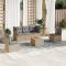 Salon de jardin avec coussins 6pcs mélange beige résine tresséeCet ensemble de canapés de jardin est le complément parfait de votre arrière-cour, terrasse ou patio, offrant un espace confortable et accueillant pour discuter avec la famille et les amis ou simplement se détendre et profiter de l'extérieur. Matériau durable : la résine tressée, également connue sous le nom de poly rotin, est un matériau synthétique solide et nécessitant peu d'entretien qui ressemble au rotin naturel. Il est léger, facile à nettoyer et couramment utilisé pour les meubles d'extérieur en raison de sa durabilité et de ses propriétés de résistance aux intempéries.Fonction de rangement avec sac résistant à l'eau : chaque siège de jardin dispose d'un espace de rangement sous l'assise, complété par un sac résistant à l'eau pour ranger les coussins, les jouets et d'autres objets. Les sacs intérieurs sont dotés d'un couvercle et peuvent être solidement fixés aux sièges à l'aide de bandes auto-agrippantes pour plus de stabilité.Dessus stable et facile à nettoyer : cette table de jardin a un dessus en bois d'acacia robuste, durable et facile à nettoyer avec un chiffon humide.Housse amovible et lavable : ces coussins de siège sont dotés de housses amovibles pour un lavage et un entretien faciles.Conception modulaire : cet ensemble de meubles d'extérieur a une conception modulaire, ce qui le rend complètement flexible et facile à déplacer, afin que vous puissiez créer un agencement de meubles d'extérieur personnalisé. Bon à savoir :Pour que vos meubles d'extérieur restent beaux, nous vous recommandons de les protéger avec une housse imperméable.