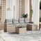 Salon de jardin avec coussins 6pcs mélange beige résine tresséeCet ensemble de canapés de jardin est le complément parfait de votre arrière-cour, terrasse ou patio, offrant un espace confortable et accueillant pour discuter avec la famille et les amis ou simplement se détendre et profiter de l'extérieur. Matériau durable : la résine tressée, également connue sous le nom de poly rotin, est un matériau synthétique solide et nécessitant peu d'entretien qui ressemble au rotin naturel. Il est léger, facile à nettoyer et couramment utilisé pour les meubles d'extérieur en raison de sa durabilité et de ses propriétés de résistance aux intempéries.Dessus en verre : le dessus de la table d'extérieur est fabriqué en verre trempé solide et durable, ce qui le rend facile à nettoyer avec un chiffon humide et ajoute une touche d'élégance à votre espace extérieur.Housse amovible et lavable : ces coussins de siège sont dotés de housses amovibles pour un lavage et un entretien faciles.Cadre robuste et stable : le cadre en acier enduit de poudre assure la solidité et la stabilité du meuble de jardin pour une utilisation quotidienne à l'extérieur.Conception modulaire : cet ensemble de meubles d'extérieur a une conception modulaire, ce qui le rend complètement flexible et facile à déplacer, afin que vous puissiez créer un agencement de meubles d'extérieur personnalisé. Bon à savoir :Pour que vos meubles d'extérieur restent beaux, nous vous recommandons de les protéger avec une housse imperméable.