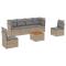 Salon de jardin avec coussins 7 pcs beige résine tresséeCet ensemble de canapés de jardin est le complément parfait de votre arrière-cour, terrasse ou patio, offrant un espace confortable et accueillant pour discuter avec la famille et les amis ou simplement se détendre et profiter de l'extérieur. Matériau durable : la résine tressée, également connue sous le nom de poly rotin, est un matériau synthétique solide et nécessitant peu d'entretien qui ressemble au rotin naturel. Il est léger, facile à nettoyer et couramment utilisé pour les meubles d'extérieur en raison de sa durabilité et de ses propriétés de résistance aux intempéries.Expérience d'assise confortable : ce mobilier d'extérieur, doté de coussins épais, offre une expérience d'assise confortable.Dessus stable et facile à nettoyer : cette table de jardin a un dessus en bois d'acacia robuste, durable et facile à nettoyer avec un chiffon humide.Housse amovible et lavable : ces coussins de siège sont dotés de housses amovibles pour un lavage et un entretien faciles.Conception modulaire : cet ensemble de meubles d'extérieur a une conception modulaire, ce qui le rend complètement flexible et facile à déplacer, afin que vous puissiez créer un agencement de meubles d'extérieur personnalisé. Bon à savoir :Pour que vos meubles d'extérieur restent beaux, nous vous recommandons de les protéger avec une housse imperméable.