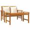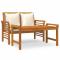 Salon de jardin avec coussins blanc crème 2 pcs Bois massifDétendez-vous et profitez de vos loisirs sur cet ensemble de meubles de jardin très tendance ! Il est conçu pour répondre à une variété de vos besoins. Bois massif de qualité supérieure : l'ensemble de salon est fabriqué en bois d'acacia. Le bois d'acacia massif est un beau matériau naturel. Le bois d'acacia est un bois dur tropical, dense, robuste et durable.Dessus de table robuste : grâce au dessus de table en bois massif avec un design à lattes, la table basse vous offre de l'espace pour mettre vos collations, corbeilles de fruits, objets décoratifs et autres objets essentiels.Design confortable : le dossier et les accoudoirs légèrement incurvés ajoutent un confort d'assise supplémentaire au banc.Coussin et oreillers confortables : le coussin et les oreillers bien rembourrés et amovibles offrent un confort optimal pendant votre temps d'assise en plein air. Remarque :Afin de prolonger la durée de vie de votre mobilier d'extérieur, nous vous recommandons de le protéger avec une housse imperméable.