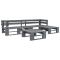 Salon de jardin palette 4 pcs Bois GrisNotre ensemble de salon palette de jardin sera un choix idéal pour vous détendre, profiter du beau temps, faire une sieste ou discuter en famille ou entre amis. Avec son design intemporel de palette, cet ensemble de meubles en bois ajoutera une touche de charme rustique à votre terrasse, jardin ou salon. Fait en pin imprégné, l'ensemble de canapés de jardin est durable et résistant aux intempéries. Cet ensemble de canapés de patio a une fabrication solide et nécessite peu d'entretien. Combiné avec des coussins moelleux et épaississement rembourrés (non inclus), notre ensemble de canapés vous apportera le plus grand confort. La table basse sera idéale pour garder les aliments et les boissons à portée de main. Le mobilier de jardin est facile à assembler. Veuillez noter que le bois est un produit naturel et peut présenter des imperfections.