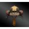 La partie frontale du casque est animée d’un shinodaré à cinq rivets et d’un ornement amovible en laiton appelé le maedaté; ce dernier figure un éventail de guerre, appelé gunbai ; il est signé au verso.