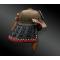 Le couvre nuque (shikoro), est articulé de cinq lamelles en fer naturel recouvert de cuir.