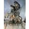 Samouraï à cheval en bronze, argenté, Epoque Shôwa Auteur, 67 cm largeur 60 cm. Profondeur 27 cm. Environ 25 kg