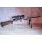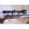 Cet exemplaire a été doté d'une crosse en noyer sur mesure, d'un bipied type Harris qui se manchonne sur le fut et d'une lunette Hawke 3-9x40.