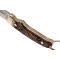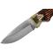 La lame est en acier inoxydable 7Cr17MoV. Un type d'acier facile à aiguiser soi-même et extrêmement résistant. Pratique pour un couteau de chasse. Le manche est en Staglon'. Il s'agit d'un plastique imitant la corne naturelle. Un matériau stable et résistant et bien moins coûteux que la corne de cerf véritable.