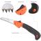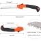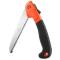 La poignée orange le rend facile à trouver. Lorsqu'elle n'est pas utilisée, la scie compacte se glisse facilement dans votre poche. Ensuite, il suffit de le sortir de la poche, de tourner la serrure, d'étendre la scie et de la verrouiller ouverte.