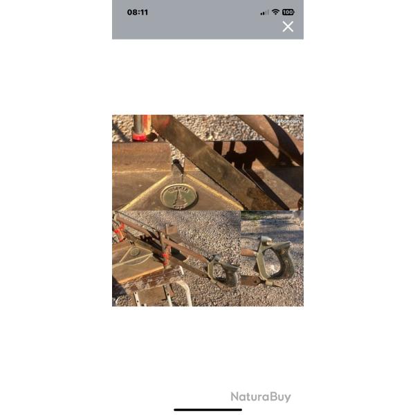 Suspendu au repos par un oeillet sur la glissière de guidage avant, avec déclenchement automatique lors de la coupe.